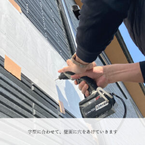 合わせ終わったら、字型に合わせて壁に穴を開けていきます。