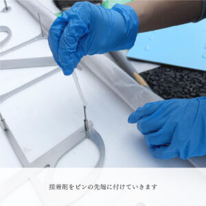 2液性の接着剤を使用し、ピンの先端につけます。