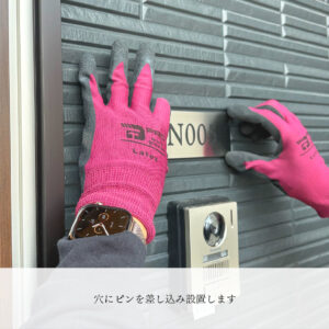 さて、こちらは部屋番号の取り付けの様子です。