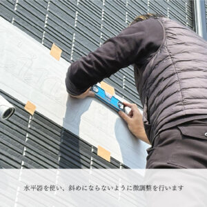 まず、字型というシートを壁面に当てて、設置位置を決めます。