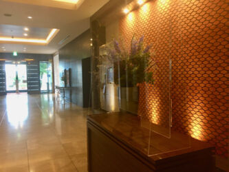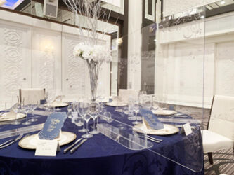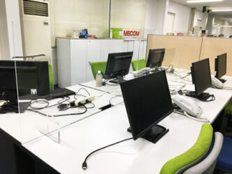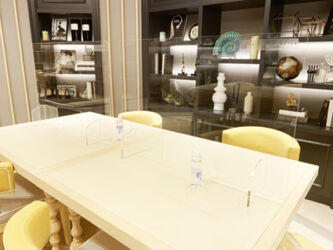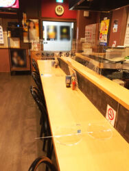 新型コロナウィルス(COVID-19)の完全終息のめどが見えず、「新しい生活様式」の実践が強く求められる中、気の緩みや季節的な要因でマスクをつけない方との接触が増えることも予想されます。ウィルス等の飛沫対策の1つである吊り下げ式のビニールカーテンは工事が必要な上、圧迫感もありエアコンの冷暖効果を低下させる場合があります。当社の高透明アクリルパーテーション「SooN!!」(スーン)は、机やカウンターに置くタイプなので「すぐに使えて工事なし」で「移動もらくらく」冷暖房効果を下げることもありません。 規定サイズ内であれば開口加工等も可能です。さらに、設置前より空間を魅力的に高める透明パーテーション自体を装飾できる「彩(いろどり)」や、円卓やカウンター席など、隣の方との飛沫対策強化に最適な「サイドガード」もラインナップ。様々なシチュエーションやサイズ・形状に対応できる「カスタマイズ」もございます。 お気軽にお問合せ下さい。
